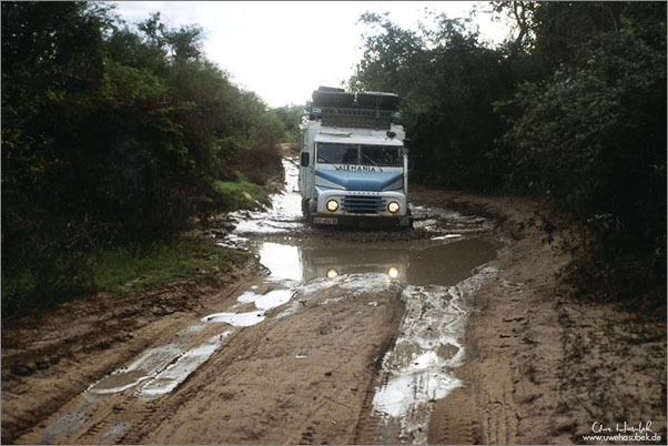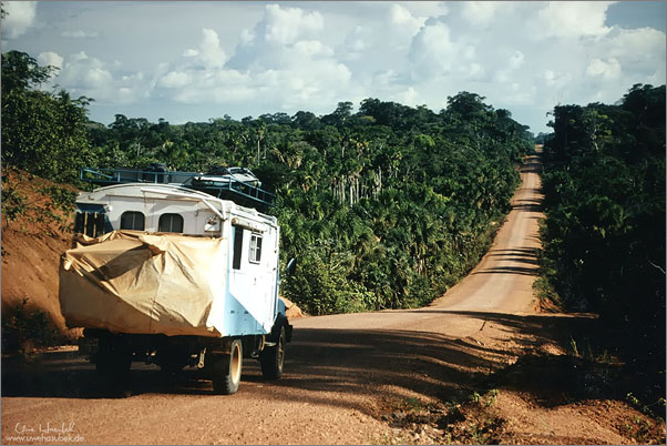Im August 1993 verschifften wir den Hanomag von Miami (USA) nach Caracas (Venezuela). Ein Jahr lang sind wir von Venezuela durch den Amazonas, entlang an der Ostküste Südamerikas bis nach Feuerland gefahren und von dort wieder an der Westküste Südamerika über Argentinen, Chile und Bolivien bis nach Peru. Letztendlich ging esquer durch Bolivien bis nach Rio de Janeiro von unsere Reise nach 1 1/2 Jahre leider zu Ende ging.