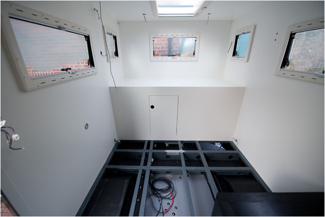 | der doppelte Aufbauboden nimmt die gesamte Technik auf und bietet optimalen Kantenschutz für die Aufbauwände | |