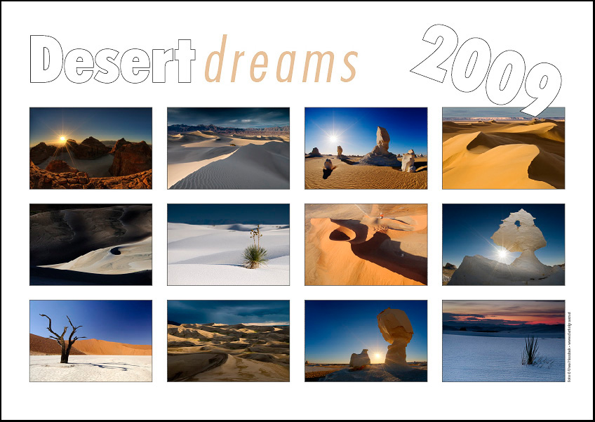 Der Kalender "Desertdreams 2009" enthält Bilder aus der Namib (Namibia), der Lybischen und Weißen Wüste / Sahara (Ägypten)