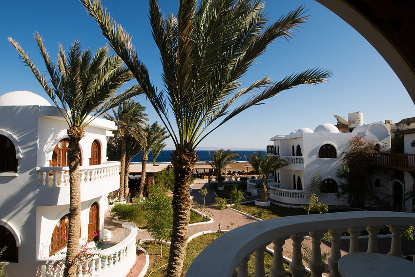 Aber das war es noch nicht gewesen, da wir ja nach Dahab, das auf dem Sinai liegt, wollten. Also mussten wir in Kairo den Terminal wechseln, was aber nur mit einem Shuttlebus oder einem Taxi möglich ist. So standen wir also mit all unserem Gepäck – und das war einiges, da wir ja wie immer eine umfangreiche Fotoausrüstung und die komplette Zeltausrüstung für die Weiße Wüste dabei hatten – vor dem Terminal 1 des Kairoers Flughafen. Busse sollten zu dieser Uhrzeit nur noch stündlich fahren und so waren wir den Taxihaien ausgeliefert, die uns zahlreich umlagerten. Angeblich 10,- € sollte der Transfer für 2 km kosten. Uns war klar, dass das völlig überzogene Preise waren, aber so richtig hatten wir keine Lust auf einen Bus zu warten. So zahlten wir letztendlich umgerechnet 8,- € und so hatte man uns das erste Mal abgezogen! 2.50 € wären angemessen gewesen, wie sich später herausstellte. Um 1.30 Uhr waren wir dann endlich im „Christina Beach Hotel“ in Dahab. Angenehme 16° C mitten in der Nacht ließen auf die nächsten Tage hoffen.