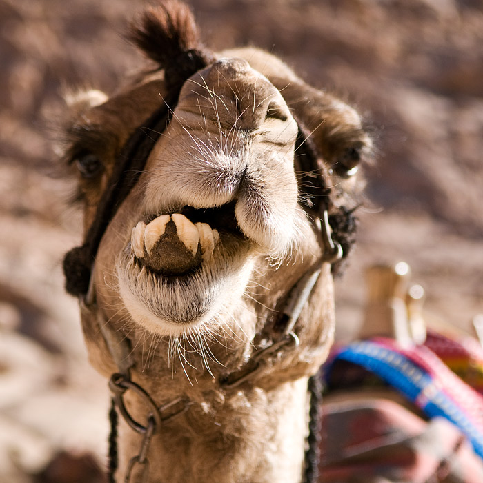 Um 6.15 Uhr war es dann so weit. Der Himmel färbte sich in alle nur erdenklichen Farben und das Schauspiel begann. Neben den vielen anderen Touristen machte besonders eine Gruppe Italiener auf sich aufmerksam, die sich erwärmten in dem sie lautstark irgendwelche Kirchenlieder mit viel „Haleluja“ gen Himmel schmetterten. Dann blickten erste Sonnenstrahlen über die Bergkuppen und tauchten die Berge in ein phantastisches Licht. Ich erlebte das Ganze nur durch den Sucher der Kamera blickend, muss aber sagen, das es ein Schauspiel der besonderen Sorte war. Eine einfach traumhafte Bergwelt in das warme Licht der ersten Sonnenstrahlen gehüllt – der Aufstieg hatte sich gelohnt. Schon bald machten wir uns an den Abstieg, der wunderschön war. Angekommen am Fuß des Berges beim Katherinenkloster begeisterten mich die vielen Kamele, die auf Touristen warteten, um sie in luftige Höhen zu tragen mehr als die Enge des Klosters. Nach nur 10 Minuten war ich mit dem kulturellen Teil des Ausflugs – der Besichtigung des Klosters – durch. Die Kamele fand ich Kulturbanause einfach viel spannender. Unterm Strich kann ich den nächtlichen Ausflug nur empfehlen – die Schönheit der Bergwelt entschädigt voll und ganz für die nächtlichen Strapazen. |