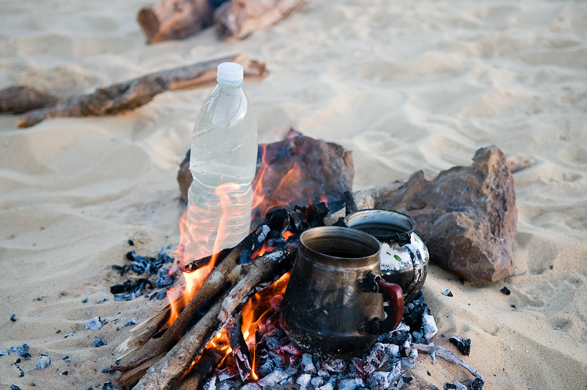 Weiter ging es in die Akabat Region, die nördlich der Weißen Wüste gelegen ist und eine Gebirgslandschaft ist, die durch den gelben Sand der Sahara wunderschön aussieht. Hier verbrachten wir an einem Felsbogen unsere letzte Nacht in der Wüste. Ich hatte mir inzwischen Durchfall eingefangen und bat Shokry nur noch das Wasser aus den Flaschen zum Kochen zu benutzen und nicht mehr das ominöse Quellwasser, wie er es in den Tagen zuvor gemacht hatte. Aber dieser Hinweis kam in jedem Fall zu spät…