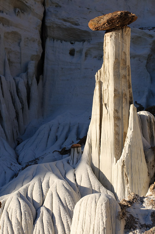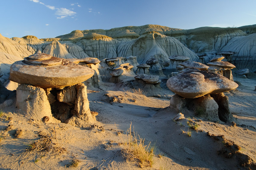 Rechtzeitig zum Sonnenaufgang sind wir bei den Hoodos. Als die Sonne über den Bergkamm klettert, taucht sie die Hoodos in helles Licht und die Wand hinter ihnen liegt im Schatten. Das ergibt tolle Effekte. Wir sind beide sehr zufrieden, mit den Fotos, die wir machen. |