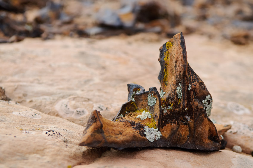 Uwe wird die Wanderung zum Coyote Gulch allein machen, da meine Füße wieder mal lädiert sind. An einem Fuß habe ich vier Stellen, von denen 2 richtig wehtun, am anderen zum Glück nur eine harmlose. Ich finde, ich bin in den letzten Tagen genug gelaufen, und beschließe mit dem Makroobjektiv meine Erfahrungen zu sammeln und endlich mal an diesem Bericht weiter zu schreiben.