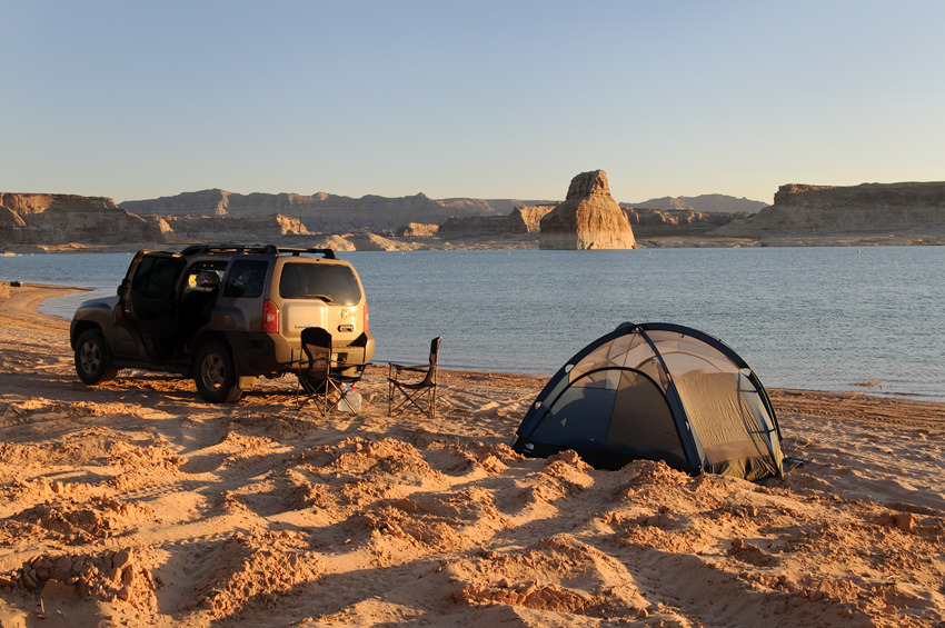 Ich bin gut ausgeruht, Uwe dagegen hat sich ausgepowert und muss jetzt doch ein wenig kämpfen. Wir fahren zum Lake Powell und suchen uns, nach einer ausgiebigen Dusche, einen Zeltplatz im Dunkeln.