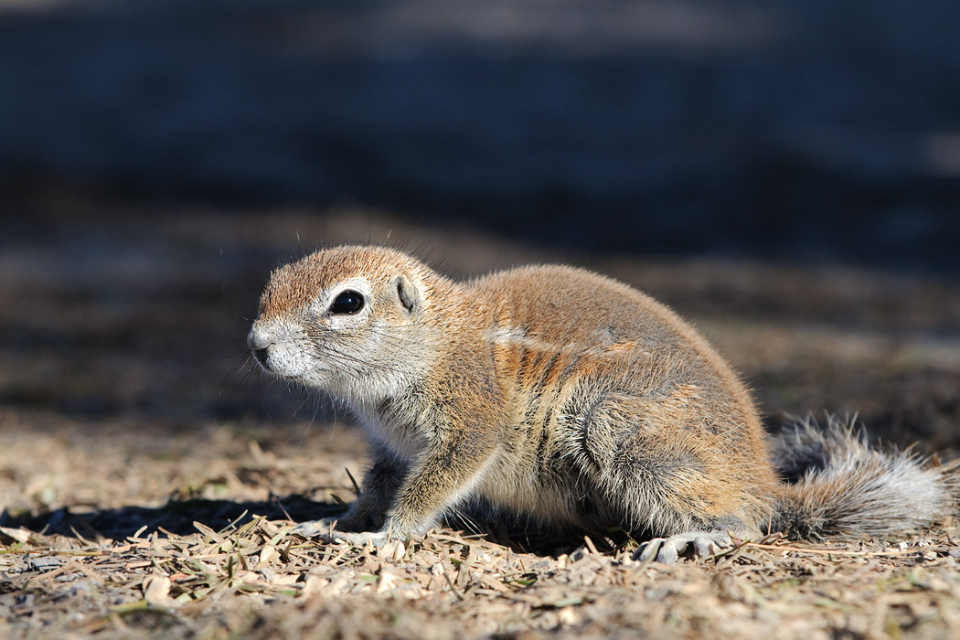 Der Nachmittagsgamedrive ist auch nicht sehr viel ereignisreicher. Wir bleiben eine Weile an einem Wasserloch und beginnen die Kleintiere zu beobachten. Ich sehe, wie eine Maus versucht, auf einem recht dünnen Zweig zu balancieren. Leider haben wir keine Kamera zur Hand. Später macht Uwe von dem Tier noch einige nette Aufnahmen. Außerdem entdeckt er eine Art Geckos auf einem Kameldornbaum, die sich dort ungefähr zu acht sonnen. Sie erinnern mit ihrer Haut irgendwie an Aale. Der kleine Vogel mit der knallroten Brust lässt sich auch ein paarmal fotografieren.