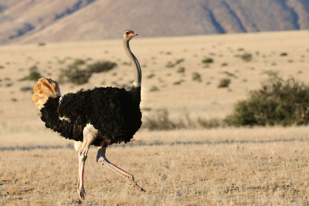 Von weitem sehen wir viele große Vögel, den Sekretär und die Riesentrappe. Leider kommen sie uns nicht so richtig näher.