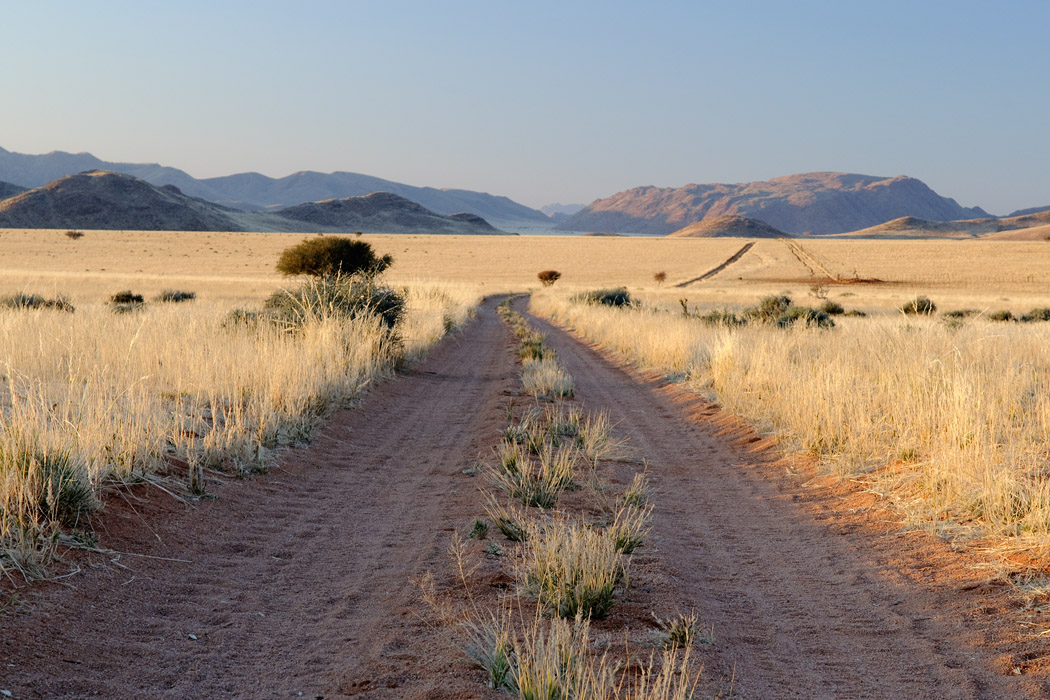 Wir starten nach einem ausgiebigen Frühstück und einem kurzen Besuch bei Anke Itzko, der Farmerin, in Richtung Sossusvlei. Ca. 390 km Schotterstraße liegen vor uns. Die Straßen lassen sich recht gut fahren, es ist weiterhin recht windig. Ein wenig zäh ziehen die Kilometer an uns vorbei.