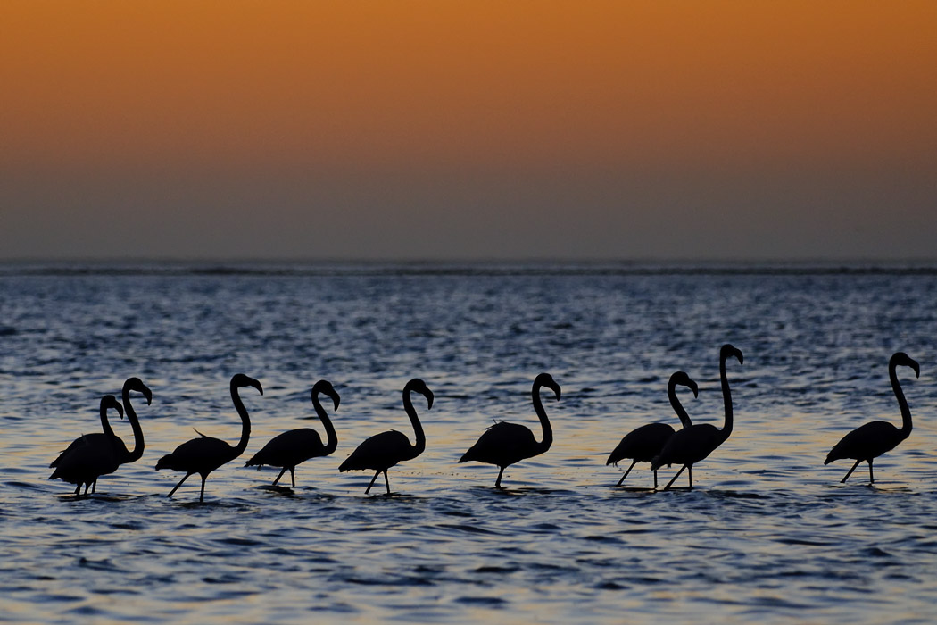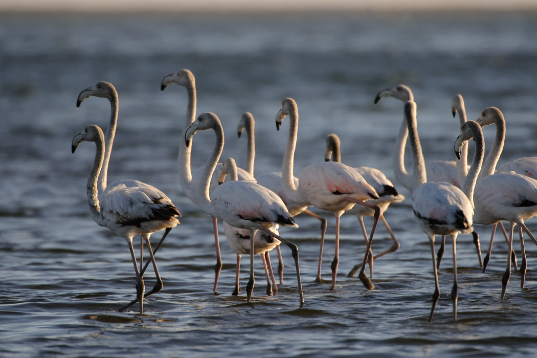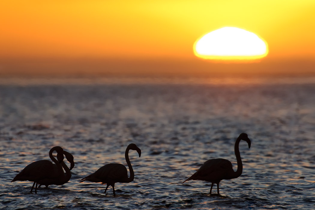 Der Morgen ist fast nebelfrei. Wir fahren nach Walvis Bay und Uwe versucht noch ein paar schöne Flamingobilder zu machen. Da die Sonne es jedoch nicht schafft, sich durchzusetzen, ist das Licht nicht so richtig gut.