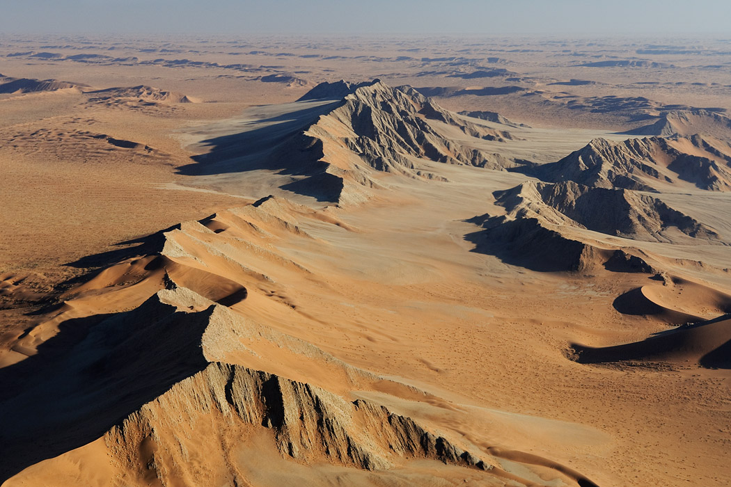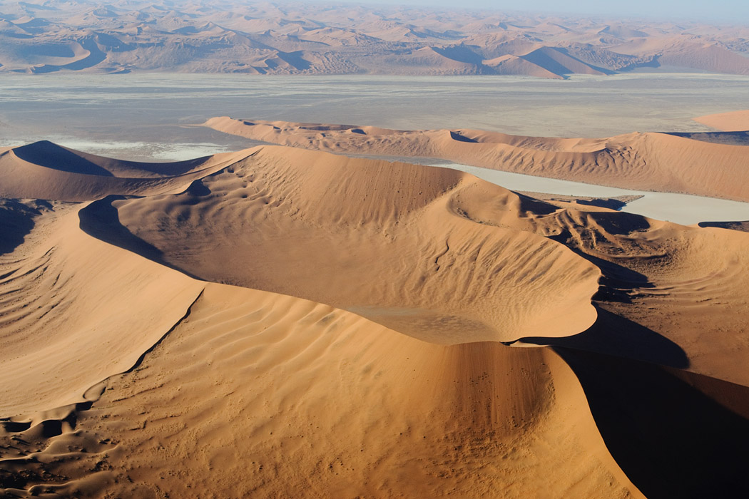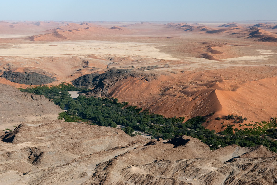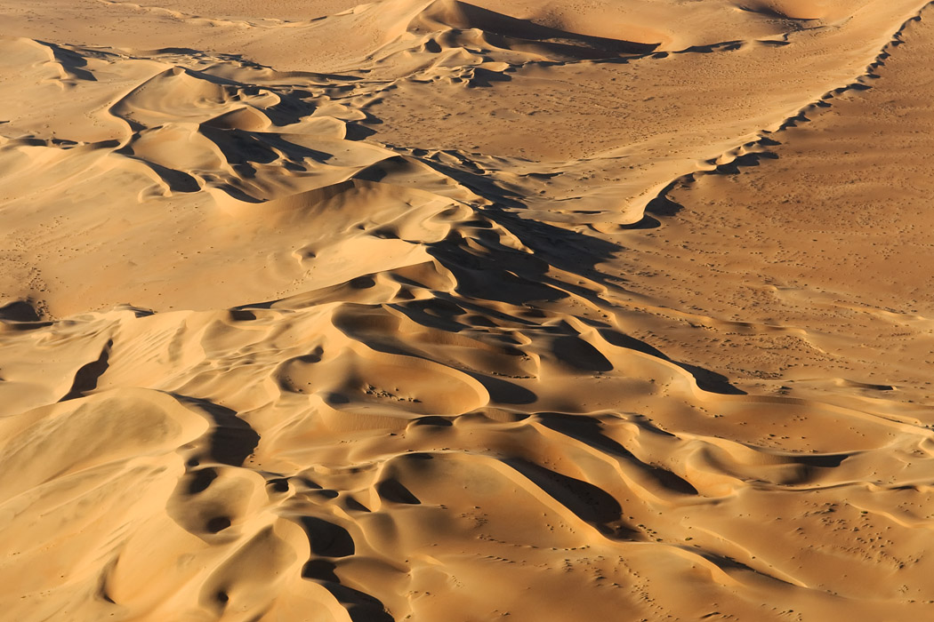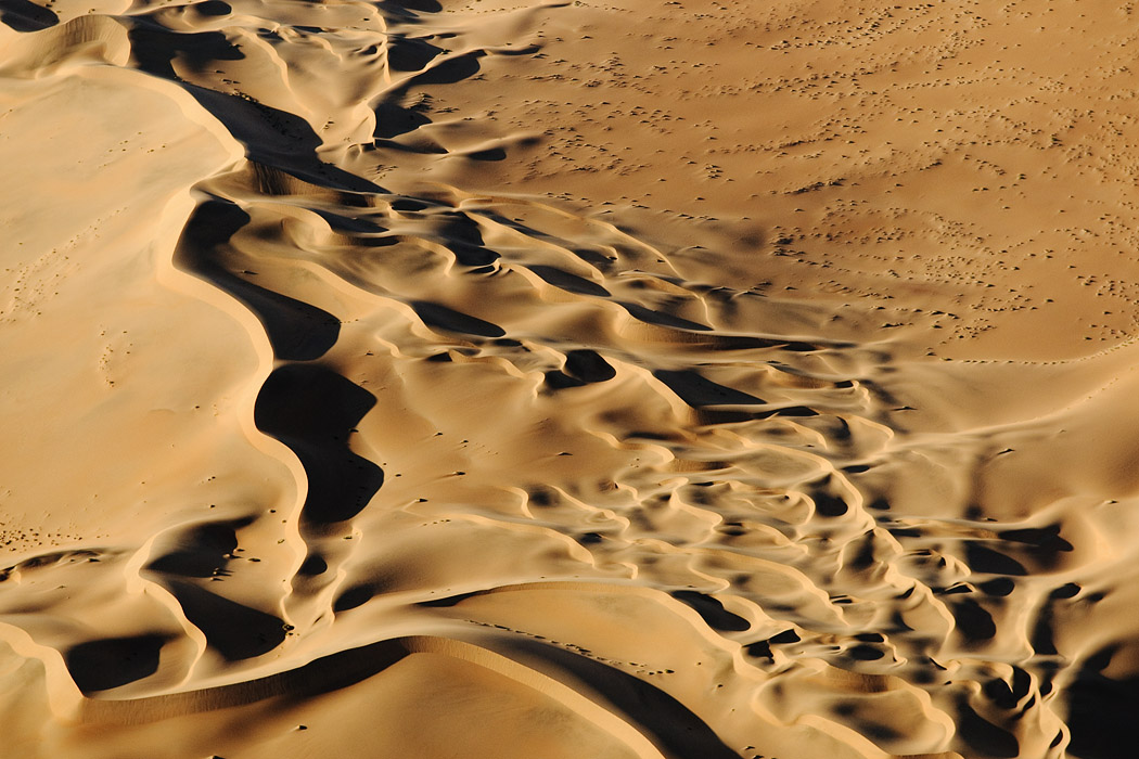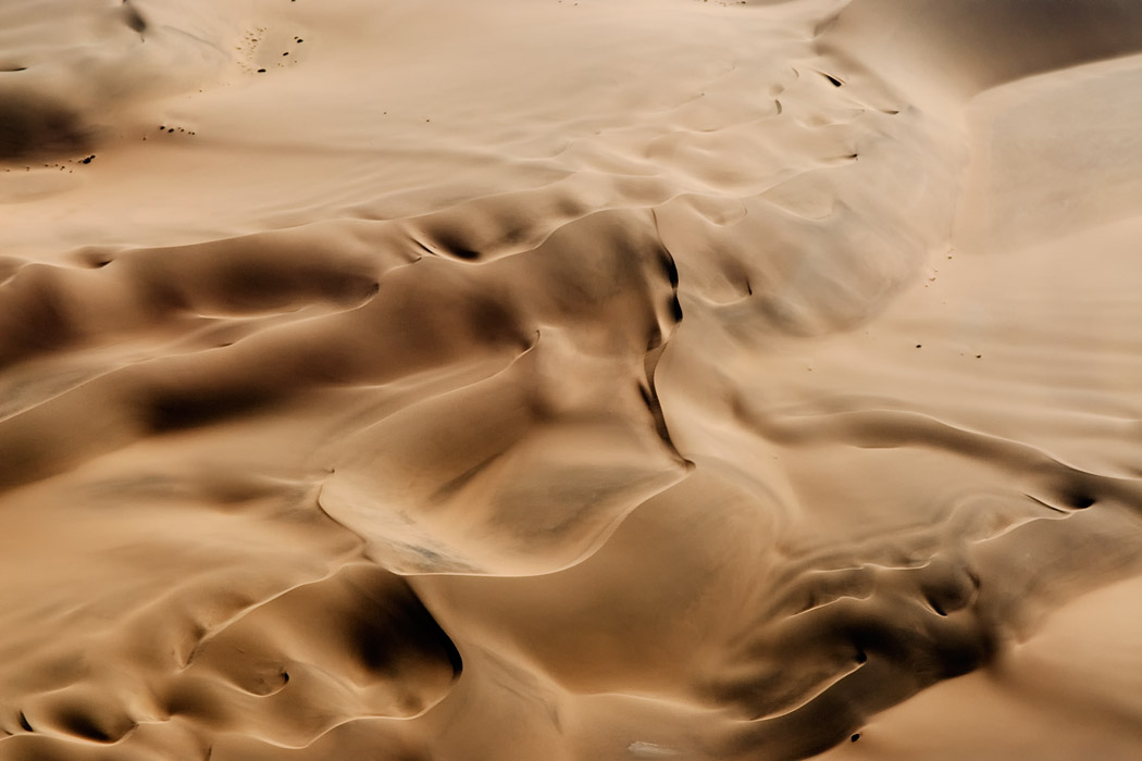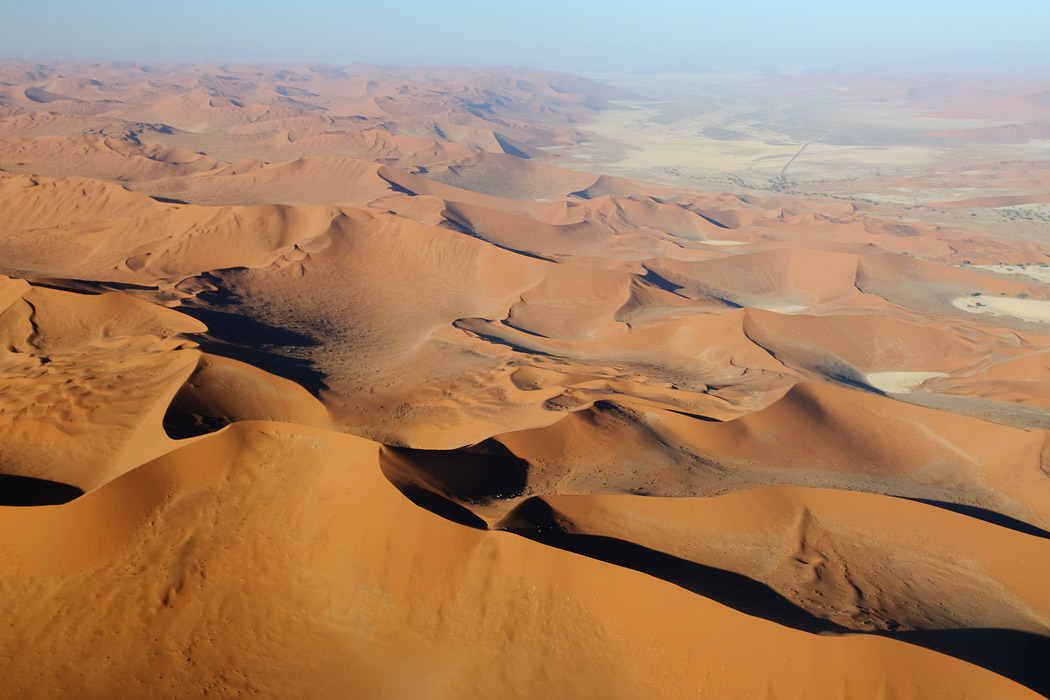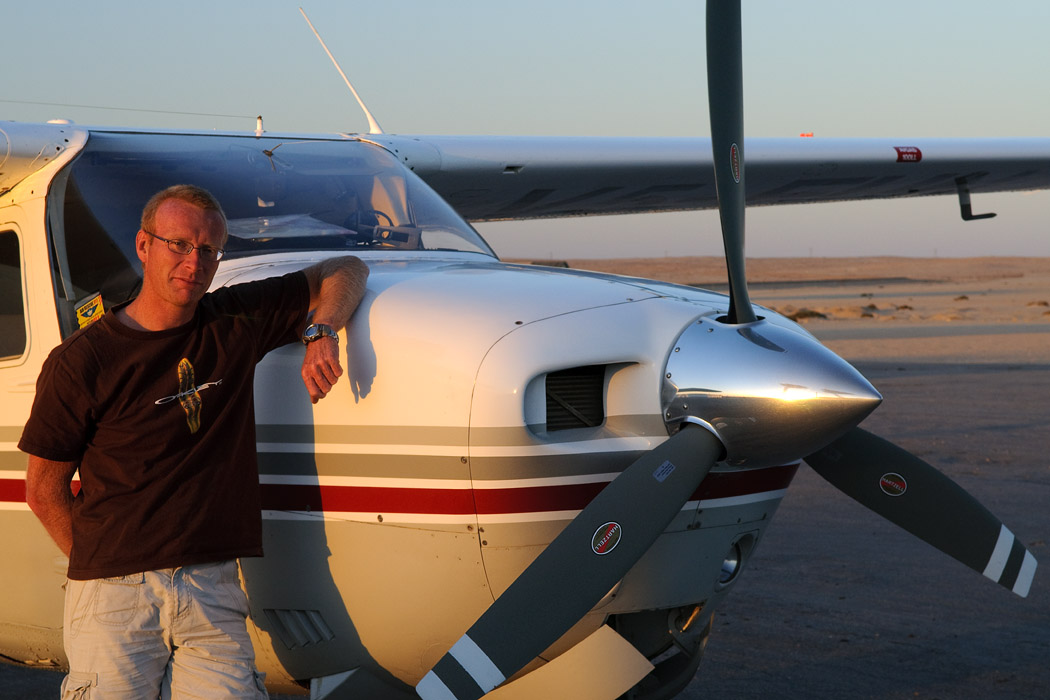 Der Nachmittag bringt gute Sicht und frohgemut begeben wir uns in den Flieger. Zu Beginn mache ich ein paar Aufnahmen und leider wird mir davon übel. Die nächsten 2 Stunden bin ich damit beschäftigt meinen Magen im Zaun zu halten und mich nicht zu übergeben. Ich hätte das Geld doch lieber auf der Mönkebergstraße oder in ähnlichen Shopingregionen vergeuden sollen. Uwe jedoch ist ganz begeistert. Er hat die Rückbank für sich allein und kann ohne jemanden zu stören von einem Fenster zum nächsten wechseln. Der Pilot fliegt viele Kurven, so dass er häufig gute Sicht auf den Koisib und die Dünen hat.