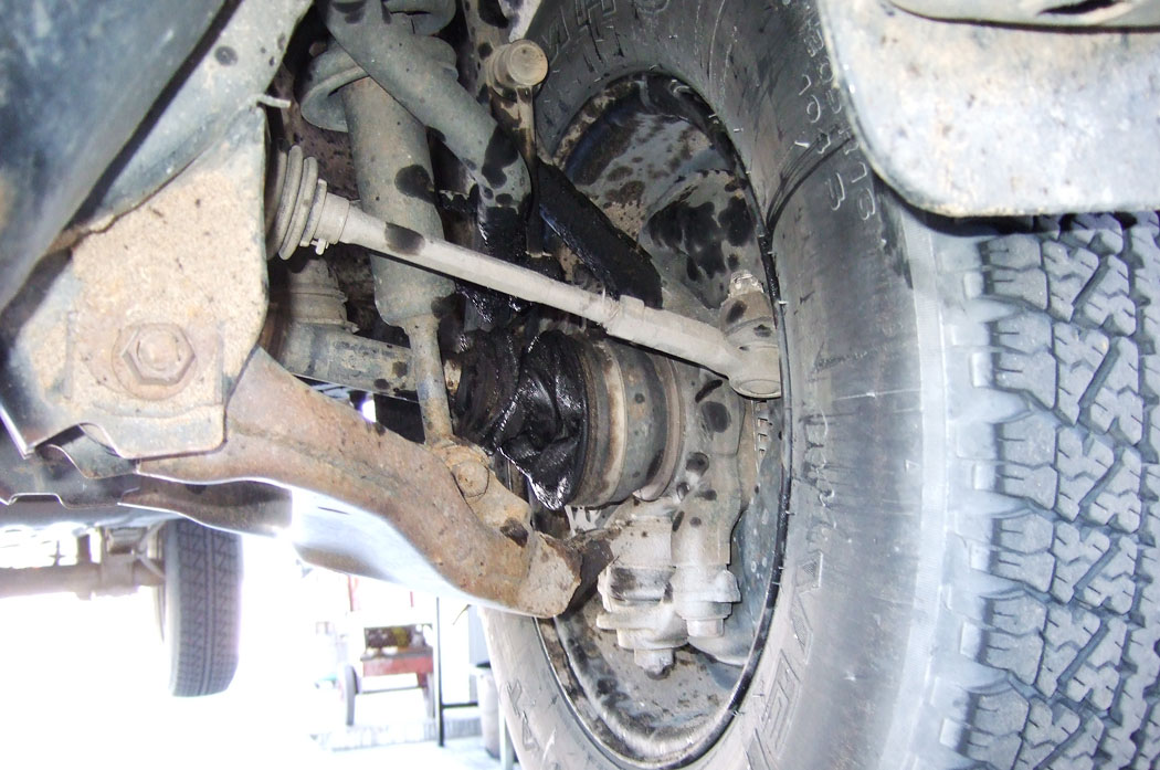 Da das Auto die ganze Zeit über neue interessante Geräusche von sich gibt, geht Uwe ihnen auf den Grund. Das Chassis ist lose. Die Verbindungen sind alle nur genietet und die Nieten haben sich, wahrscheinlich aufgrund des ewigen Geruckels auf den Straßen verabschiedet. Nun brauchen wir also auch noch eine Werkstatt.