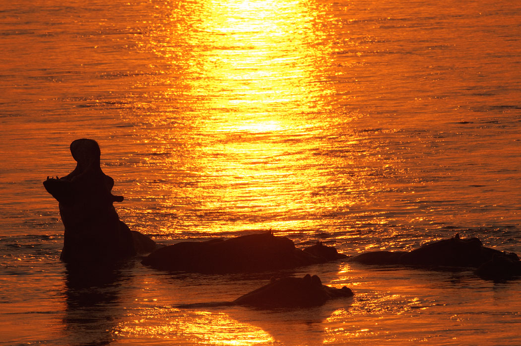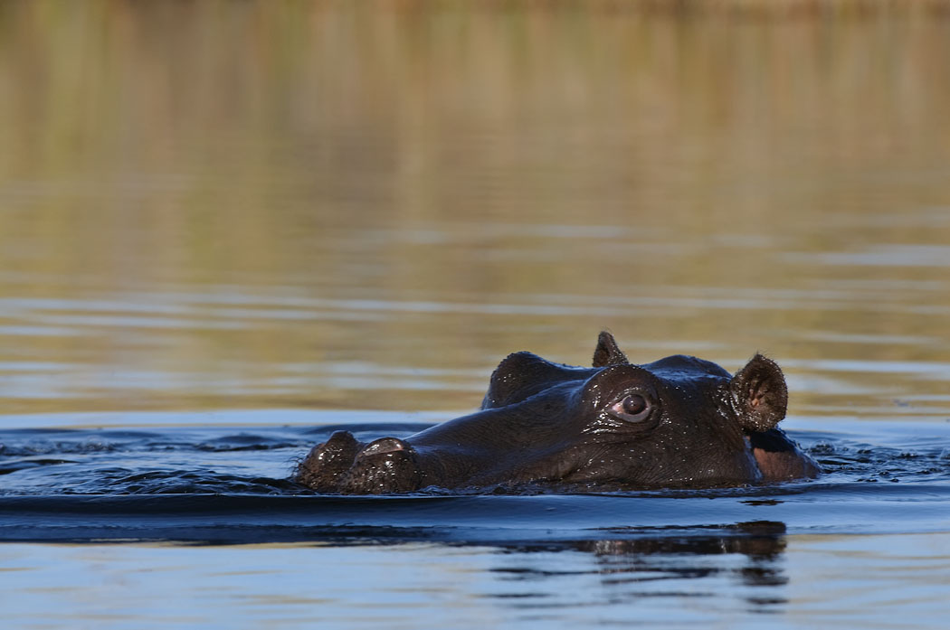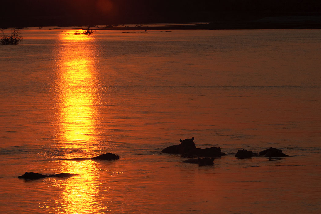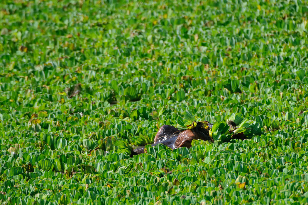Später tauchen noch einmal Hippos auf, die unser Bootsführer jagt. Die armen Tiere bewegen sich in großer Hektik und rasend schnell über den Fluss. Ihm reicht das nicht und er fährt ihn noch einige Male nach. Für gute Fotos ist die ganze Aktion zu schnell.