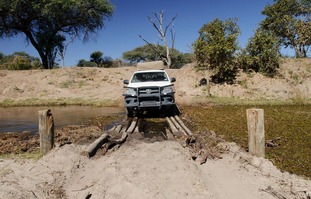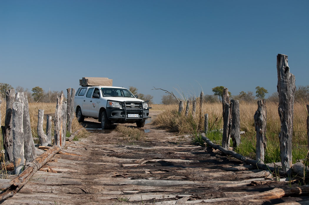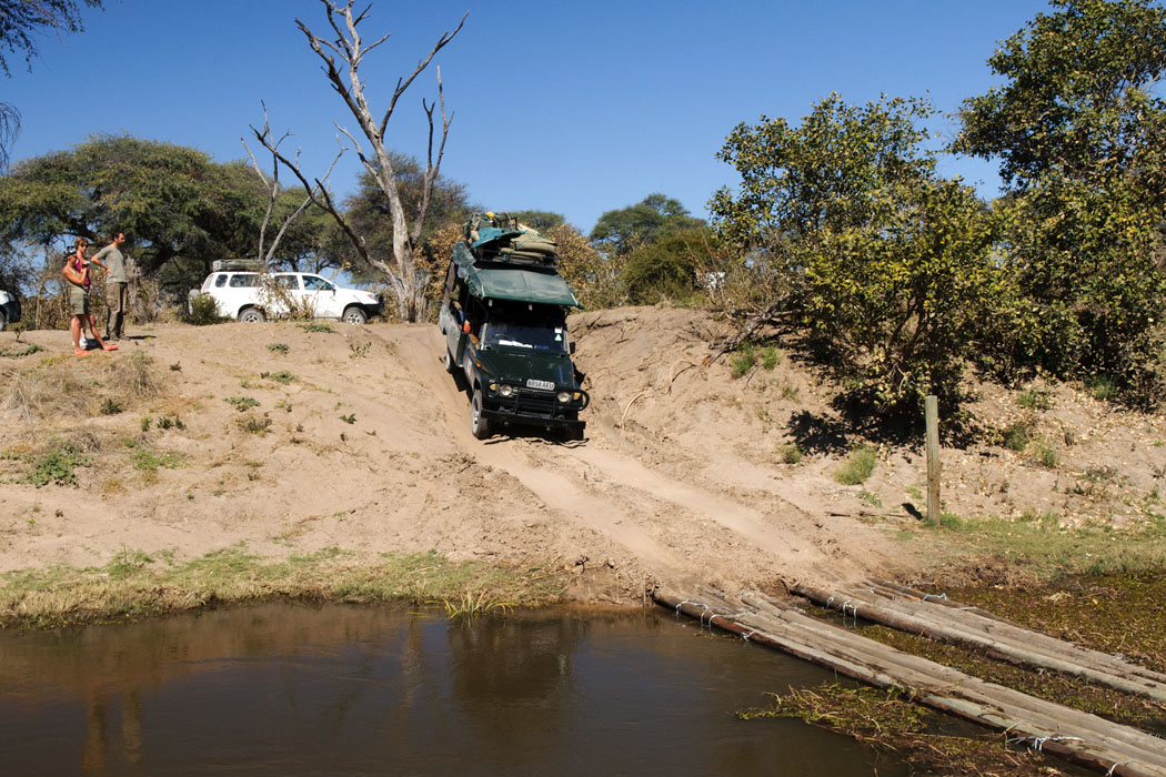 Wir haben viel vom Wasser im Moremi gehört und sind gespannt auf die Durchfahrten. Doch zur Third Bridge kommen wir noch völlig trockenen Fußes. Auch wenn die Third Bridge selbst nicht den Ansprüchen deutscher Bauingenieure entspricht, kommt man dort gut und sicher rüber.