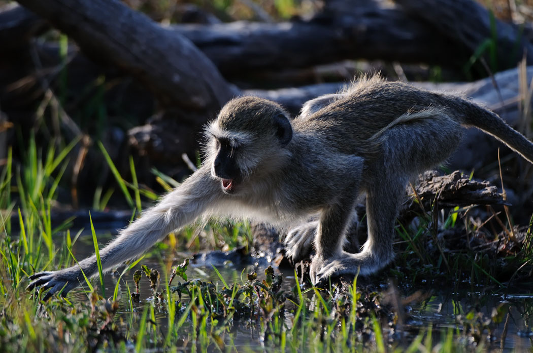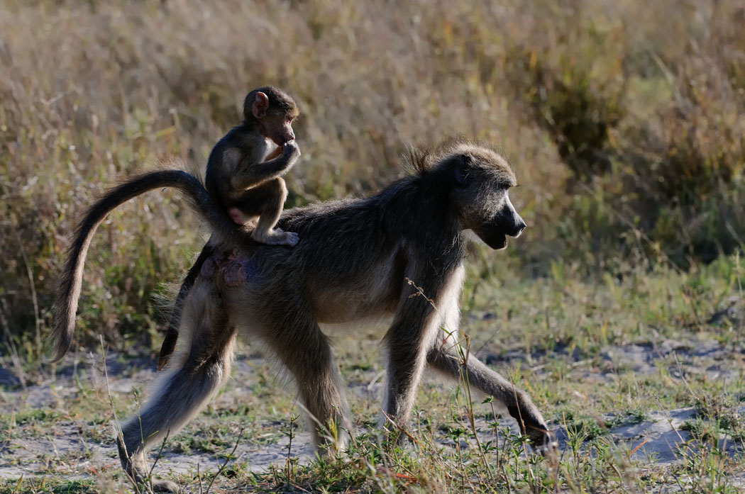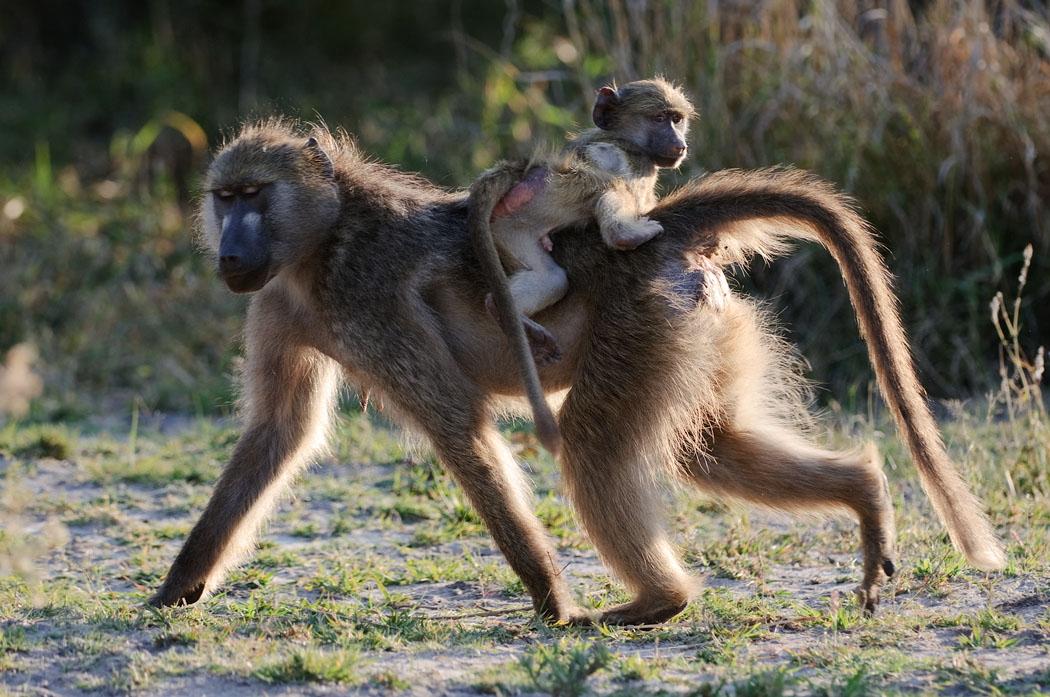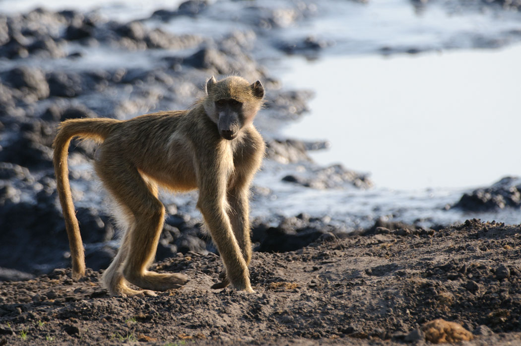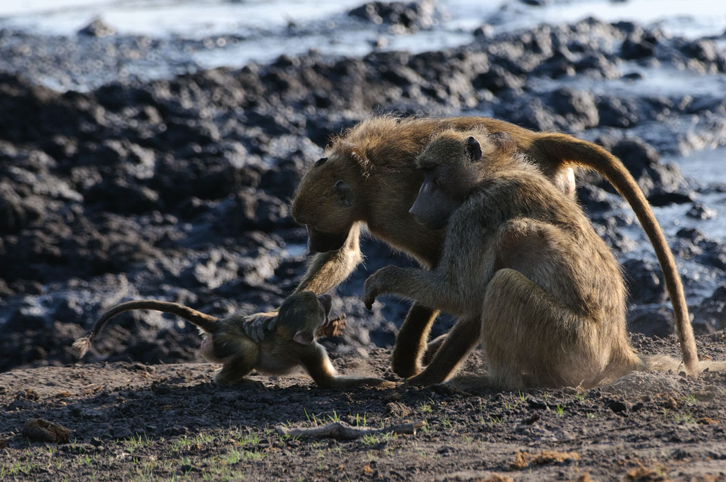Unser Gamedrive beginnt also auf dem Zeltplatz. Die Tiere toben durcheinander, spielen miteinander, flöhen, balgen und paaren sich vor unseren Augen. Sie sitzen schön im Gegenlicht und ihre Fluchtdistanz ist so, dass man sie wirklich gut vor die Linse bekommt. Heute Morgen sind sie auch nicht mehr kämpferisch, so dass wir sogar hinter ihnen her gehen können.