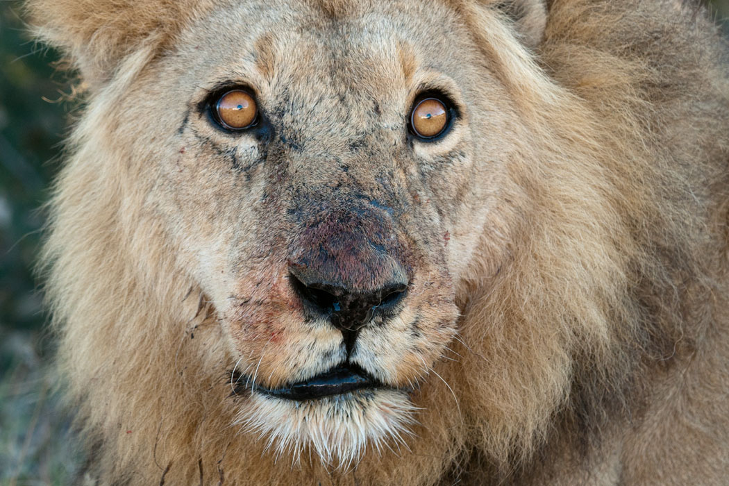 Es erscheint ein männlicher Löwe und vertreibt mit majestätischer Geste und einem eindrucksvollen Gegrummel das junge Männchen, um sich selbst über die Reste des Kudus herzumachen. Sehr spannend und Respekt einflößend!