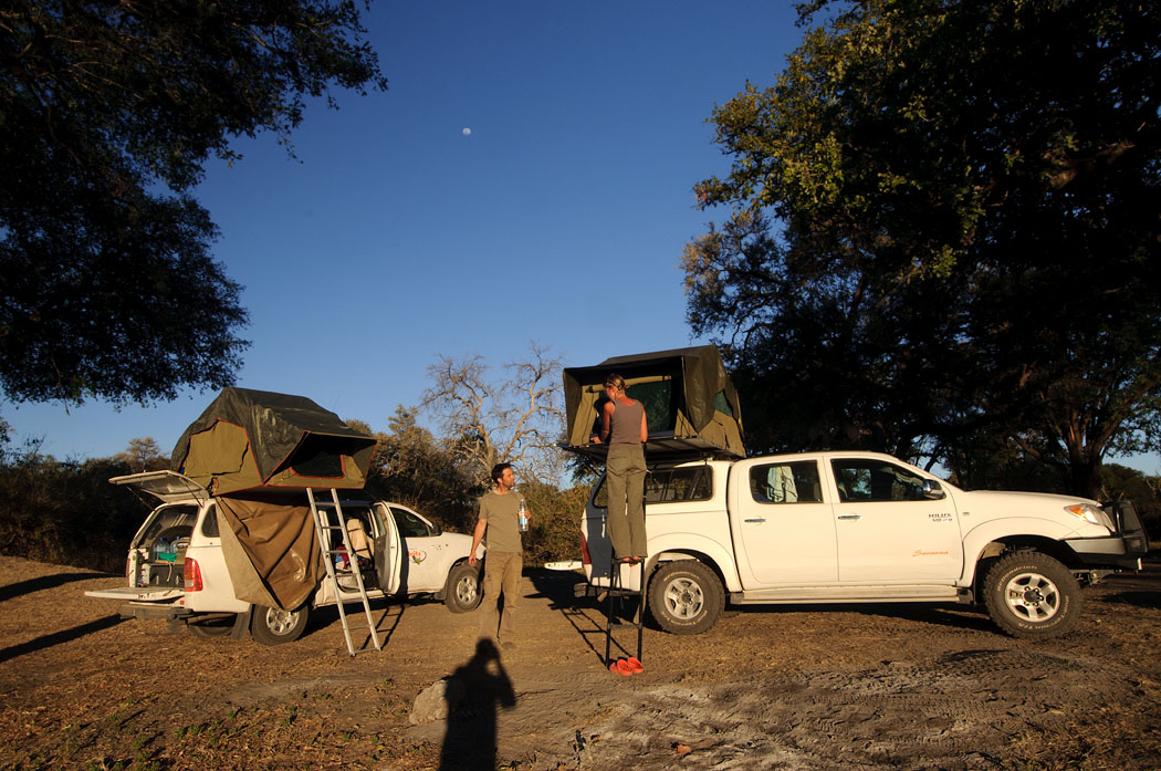 Unsere Nachbarn dort sind Manuela, Hannes und Julian aus der Nähe von Köln. Ihnen werden wir in den nächsten Tagen noch häufiger begegnen. Wir klönen, tauschen Landkarten und Autokenntnisse aus und laden die Drei ein, mit uns den Zeltplatz im Savuti- Camp zu teilen.