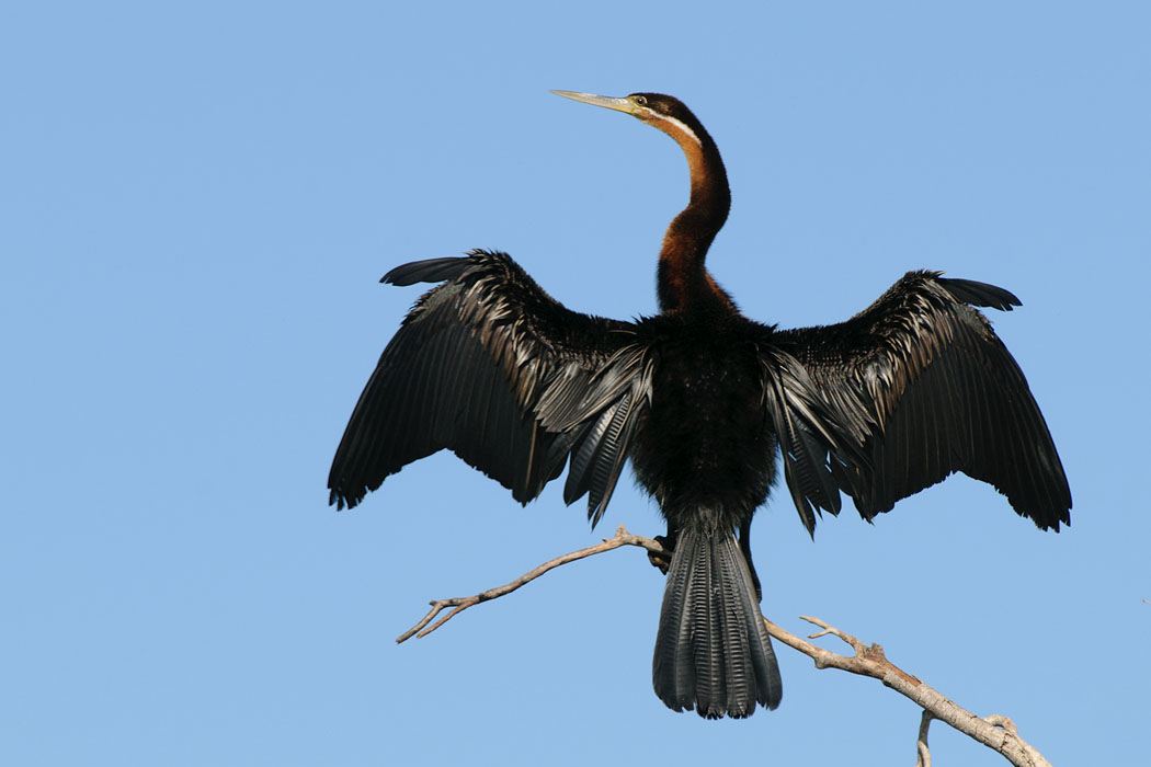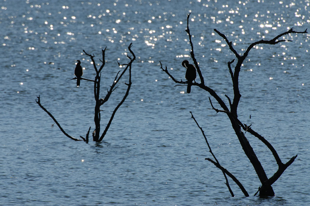 Wir beginnen mit einem morgendlichen Gamedrive, bei dem wir den Fluss weiter entlang fahren. Unvorstellbar viele Vögel sind hier am Ufer zu beobachten. Sie lassen sich von den Autos kaum irritieren. Leider fliegen sie auch nicht in die Richtung, die Uwe sich wünscht. Flugaufnahmen sind wirklich schwer zu bekommen.