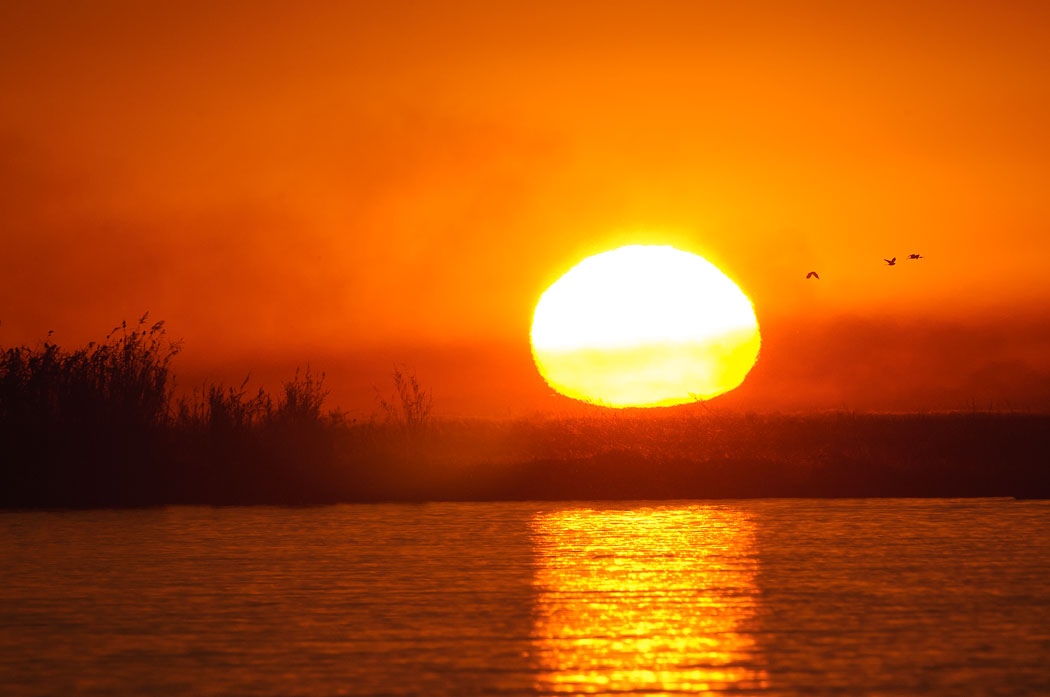Anschließend fahren wir an dieselbe Stelle wie am Abend zuvor. Auf dem Weg dorthin beobachten wir sehr lange und ausgiebig einen Entenschwarm, der immer wieder an dieselbe Stelle zurückkehrt. Es ist einfach wunderschön hier.
