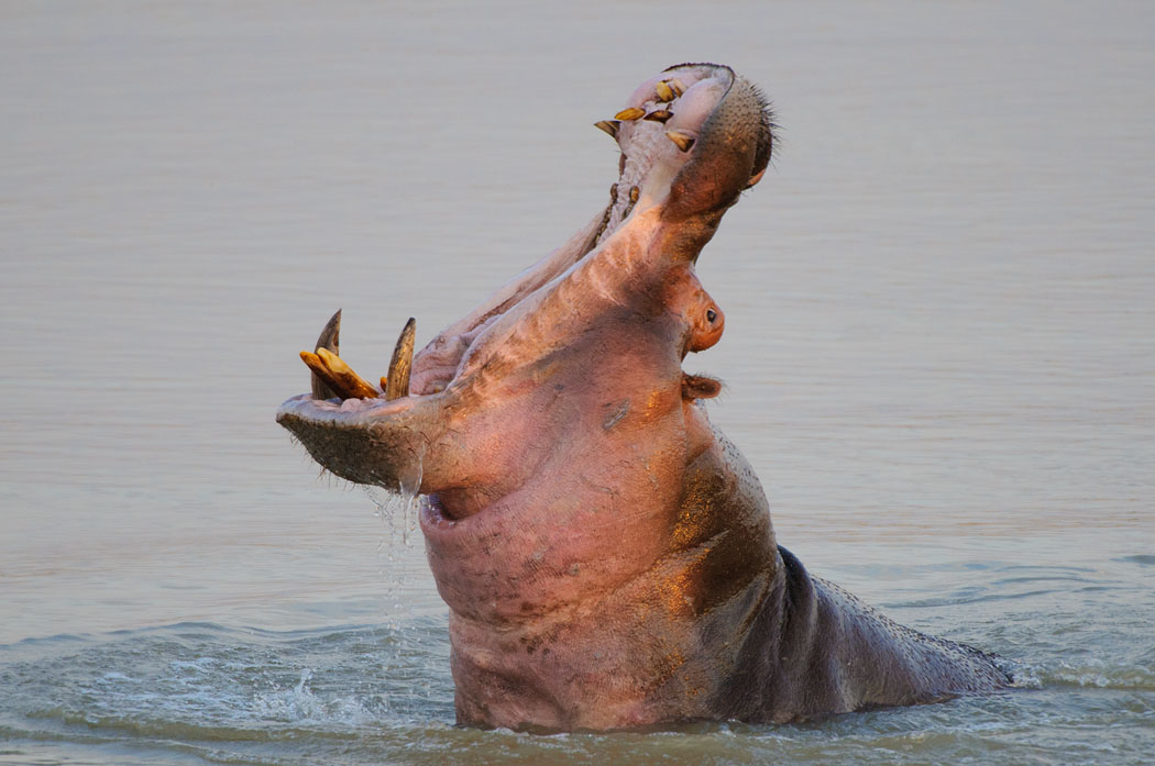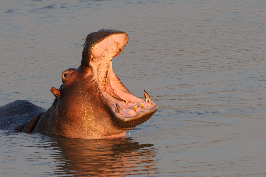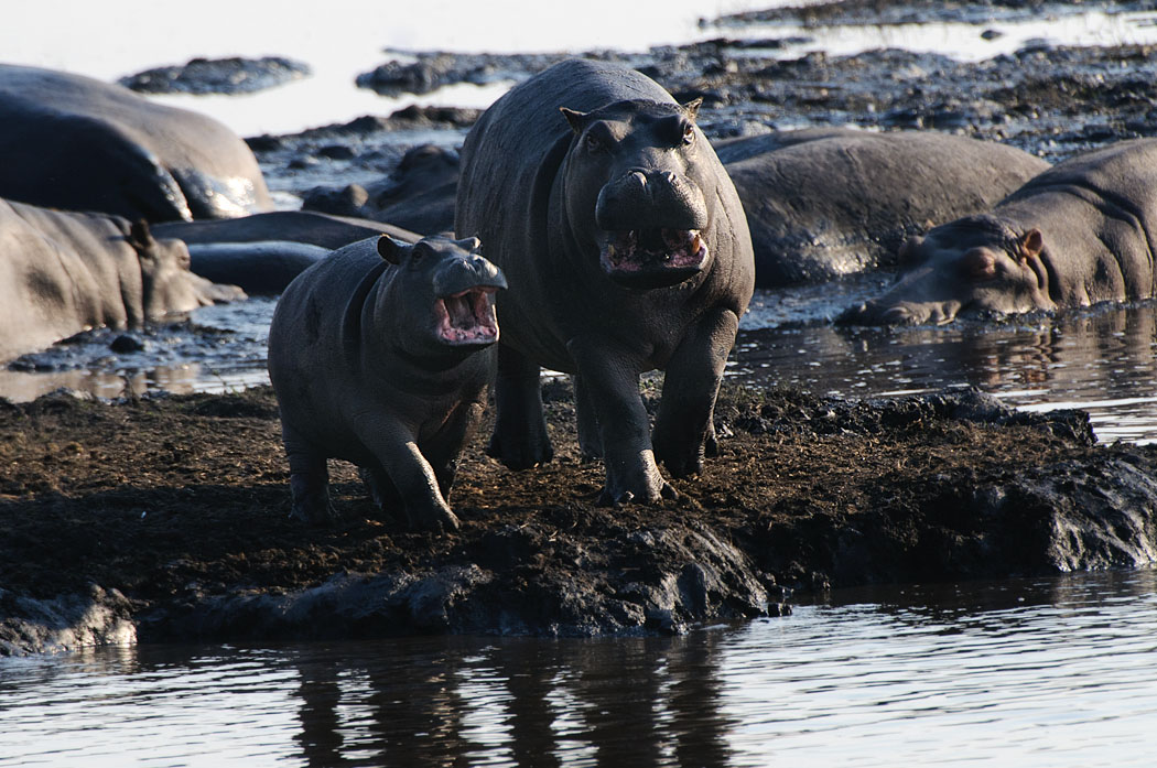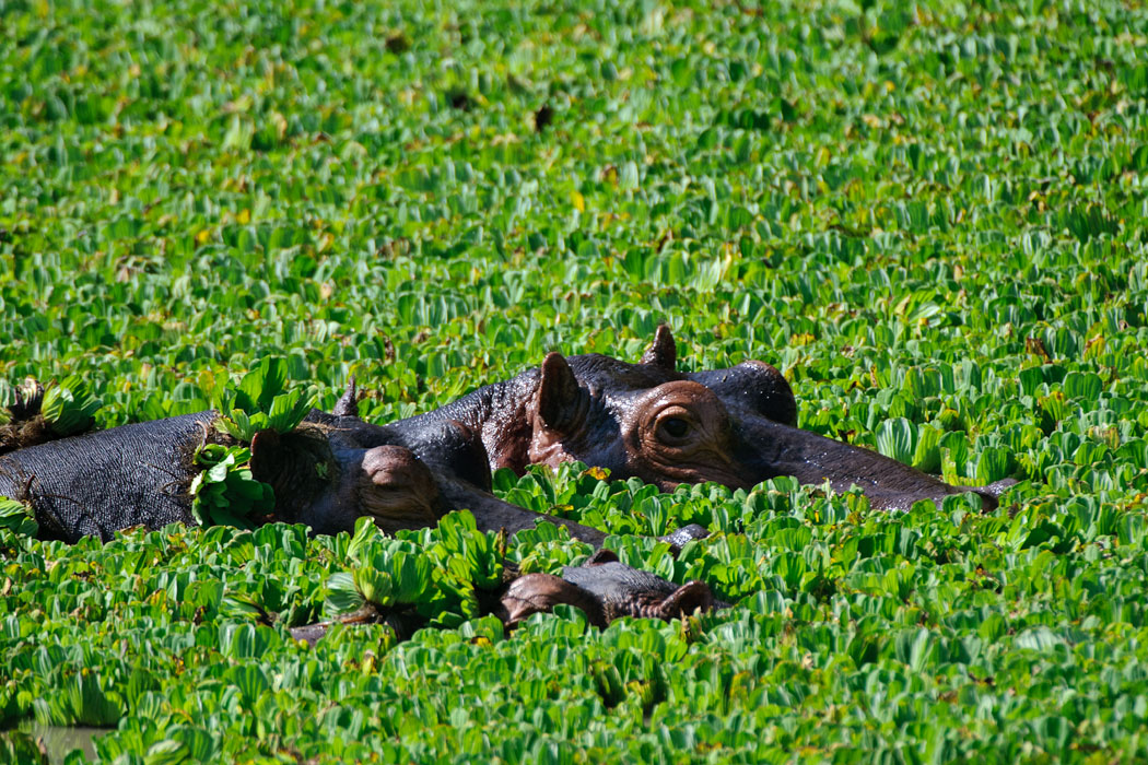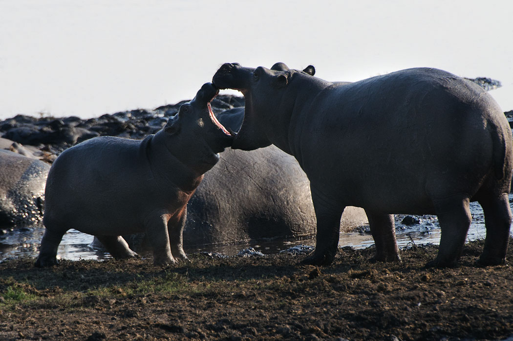 Nachmittags sehen wir als erstes wie ein Reiher, der auf dem Rücken eines Hippos steht, von diesem abgeschüttelt wird. Der Reiher fliegt ein Stückchen weiter und setzt sich auf den nächsten Hipporücken. Hier gelingt es Uwe, das Auto so zu stellen, dass er unbehindert von Ästen und Zweigen Bilder machen kann.