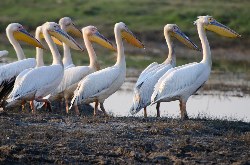 Beim Gamedrive am Abend sehen wir die Pelikane wieder. Viele von ihnen sind am Fluss gelandet. Leider kommen wir nicht sehr nah an sie heran. Sie sind sehr scheu und fliegen schnell von dannen.