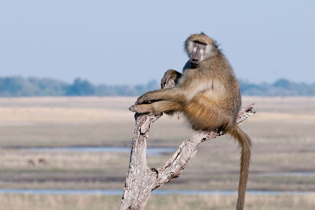 Eigentlich wollen wir ja weiter, aber schon nach wenigen Metern ergeben sich andere Motive. So sitzt zum Beispiel ein Affe derart lustig auf einem Baum, dass wir auch hier wieder Fotos machen. Je weiter wir fahren, desto mehr verändert sich die Landschaft. Man hat plötzlich von oben einen Blick auf eine Insel und ein breites Ufer, auf denen sich viele Antilopen, Affen und Vögel tummeln. Ein friedliches Miteinander, das nichts anderes zu kennen scheint.