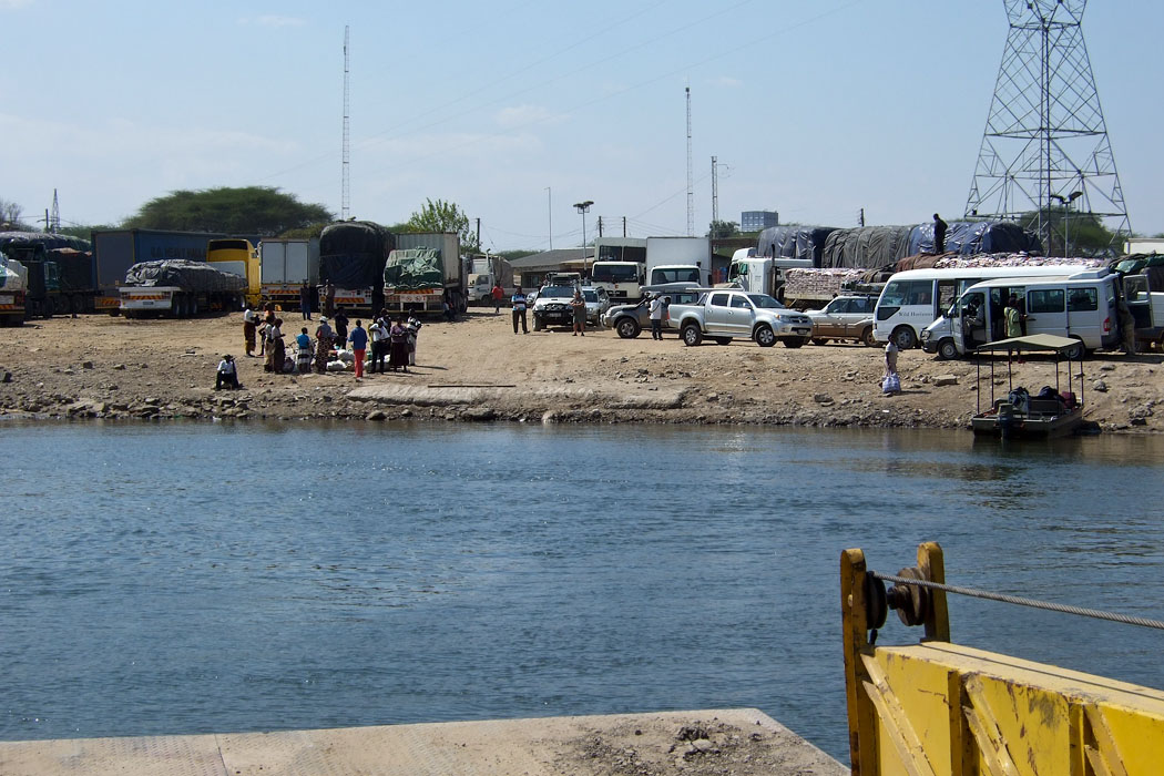 Wir lösen also erstmal ein Ticket für die Brücke. Die Dame dort schickt uns weiter zum Nachbarschalter und drängt uns, uns nach vorne zu stellen. Die Schlange murrt nicht, aber wir fühlen uns ganz komisch dabei. Scheinbar lassen sich die Bürger dieses Verhalten von Weißen gefallen. Wir bekommen schnell unseren Stempel und auch die Ausreisegenehmigung für das Auto.