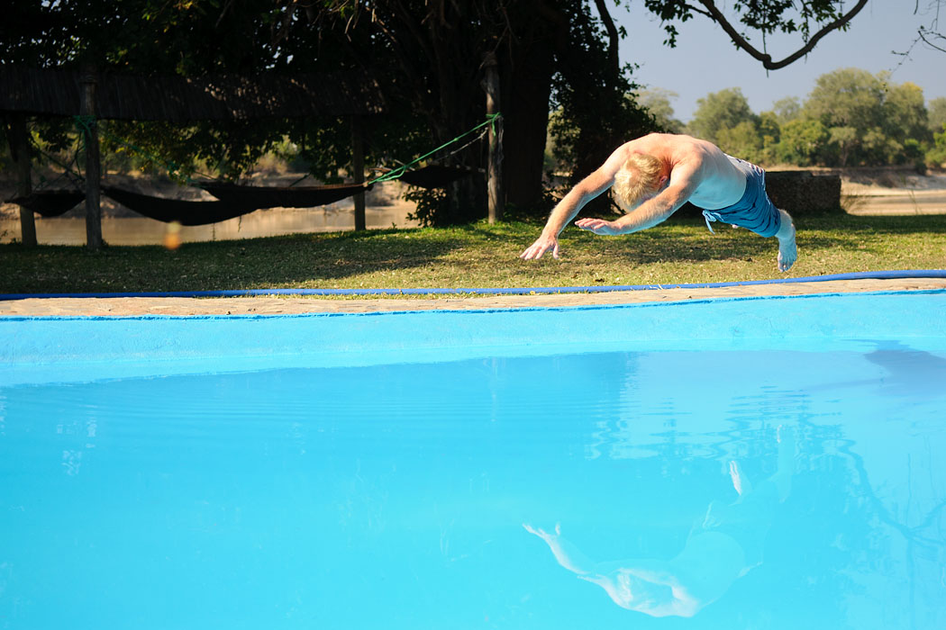 Den Nachmittag verbringen wir einfach so auf dem Campingplatz, bzw. wir fahren einkaufen und Ruth und Uwe noch einmal in den Park, um dem toten Elefanten noch einen zweiten Besuch abzustatten. Sie schauen auch den Tieren am Fluss lange zu.