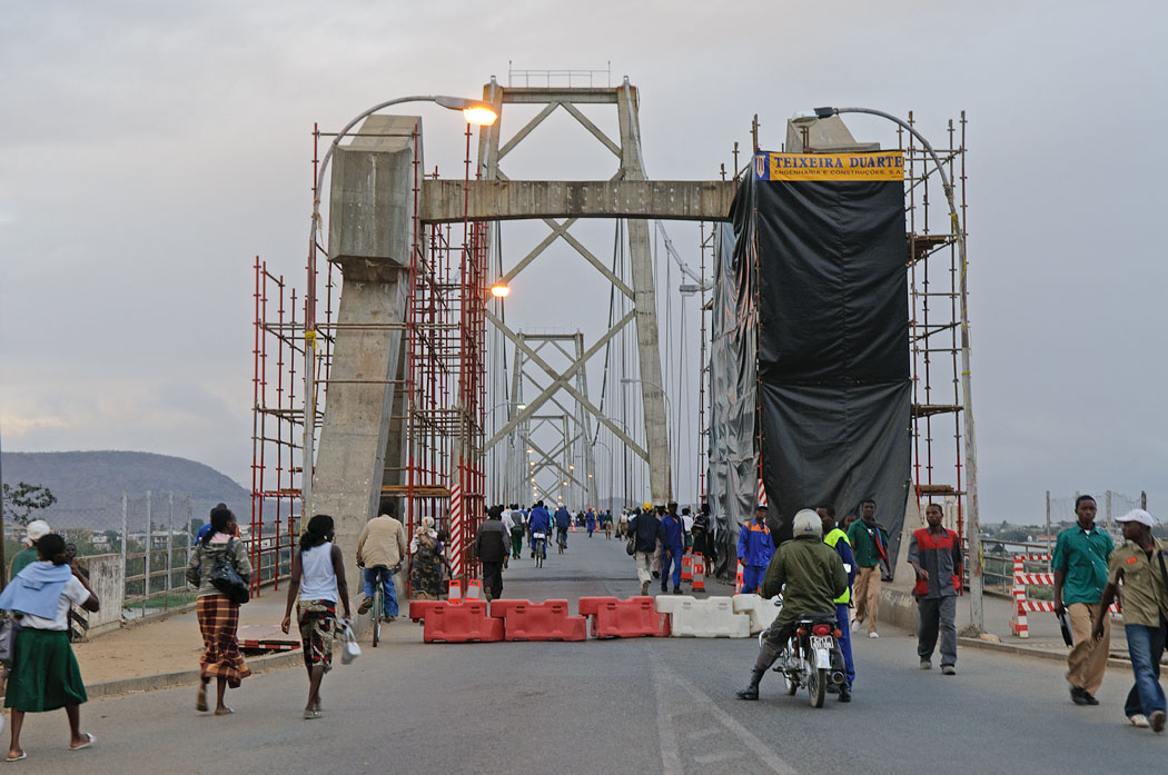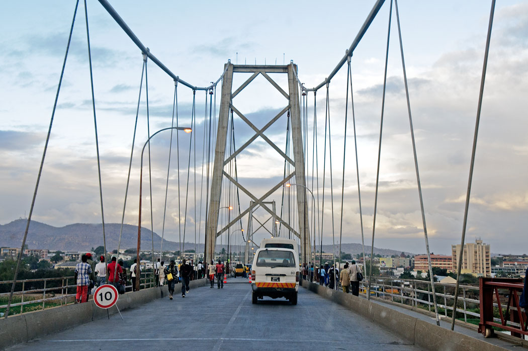 Um 6.00 Uhr stehen wir an der Brücke, die aber leider wirklich erst um 6.30 Uhr geöffnet wird. Viele Menschen gehen in dieser Zeit hinüber. Viele junge Menschen in Schuluniformen. Dabei fällt mir auf, dass einige Mädchen Hosen tragen. Das sieht man bei den Schwarzen immer noch sehr selten. Es gibt hier auch kaum übergewichtige Leute. Die meisten sind schlank oder sogar dünn.